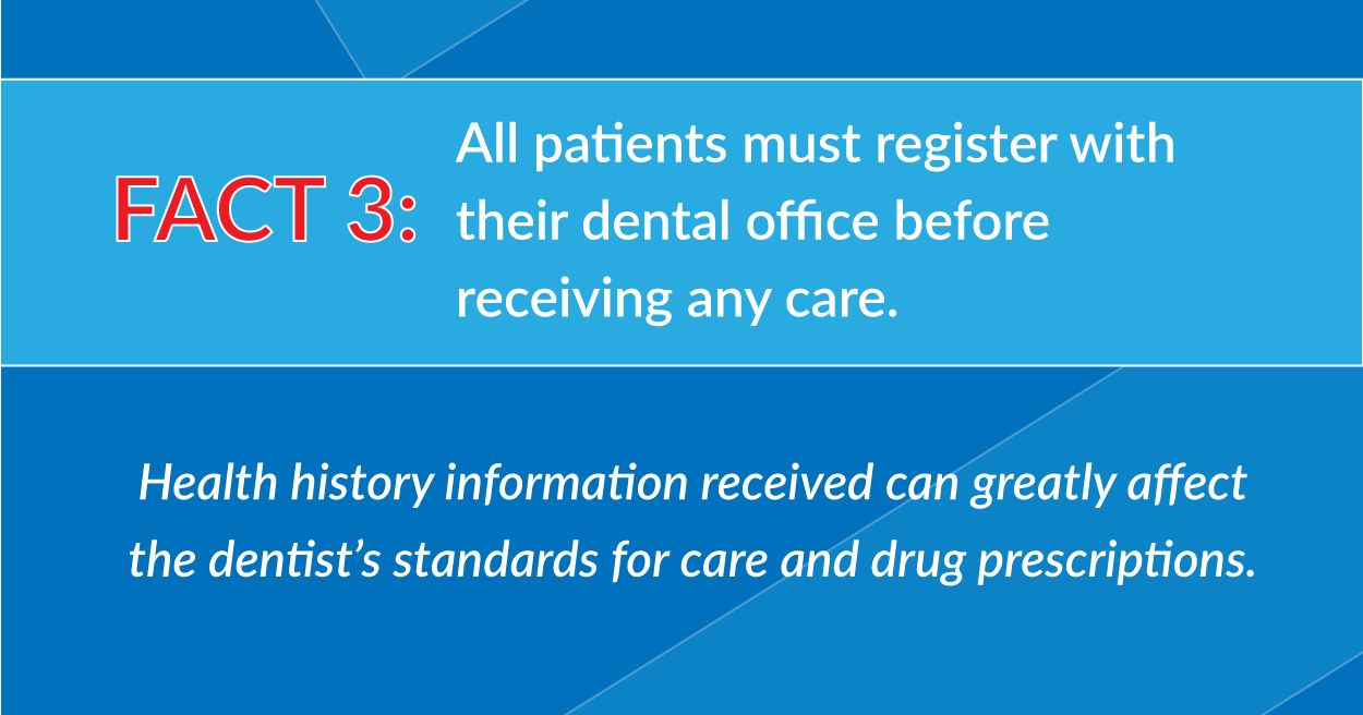 This is just common sense, but of course every patient who comes into our offices must register and complete a form that collects personal, financial and health history information. And if there are important flags raised in the health history, we have to modify our appointment and treatment procedures. Sometimes significantly. (For my thoughts on the registration process, see here and here).