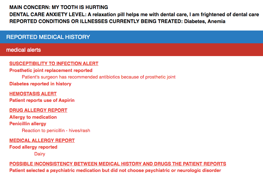 Our unique medical history summary hearkens back to the formative learning style of dentists.